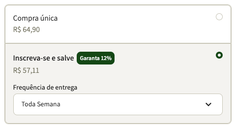 Escolha a frequência em que o pedido será gerado.
